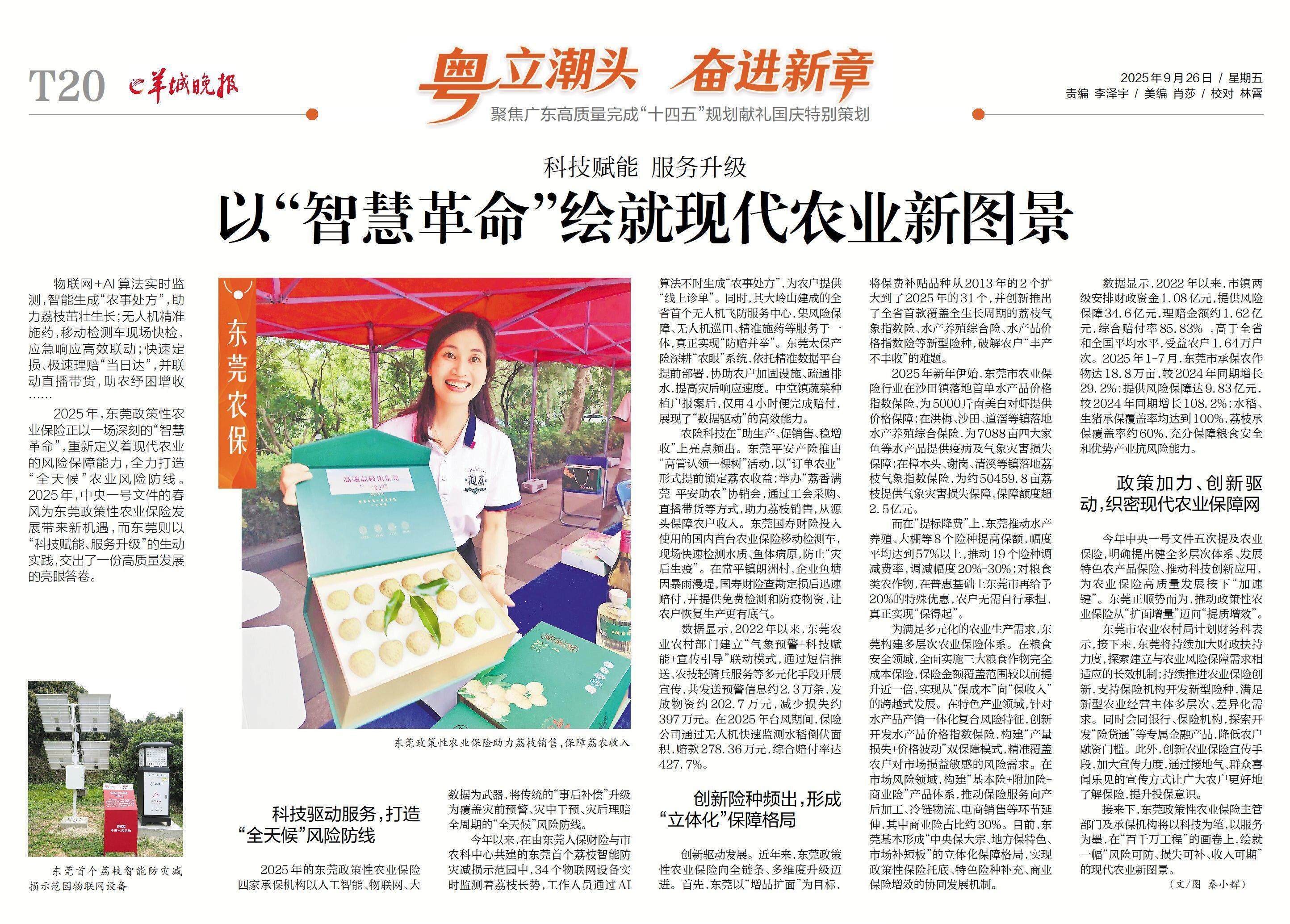 尤为亮眼的是,自2022年2月起,东莞市农业农村局结伙羊城晚报及四家农险机构,共同开动“千万农保”战略性农业保障系列宣传步履。通过开设“农业保障高质地发展”“随着农保员去助农”“微访谈·总司理说”“微视角·故事会”等专栏,以及“小羊探农”“百千万·全莞探”短视频栏目,多维度呈现农保战略改变、服求实践与一线东说念主物仪态。